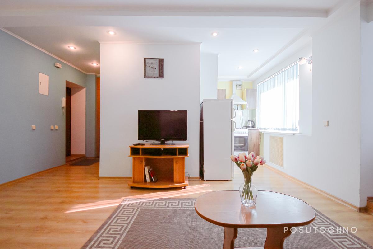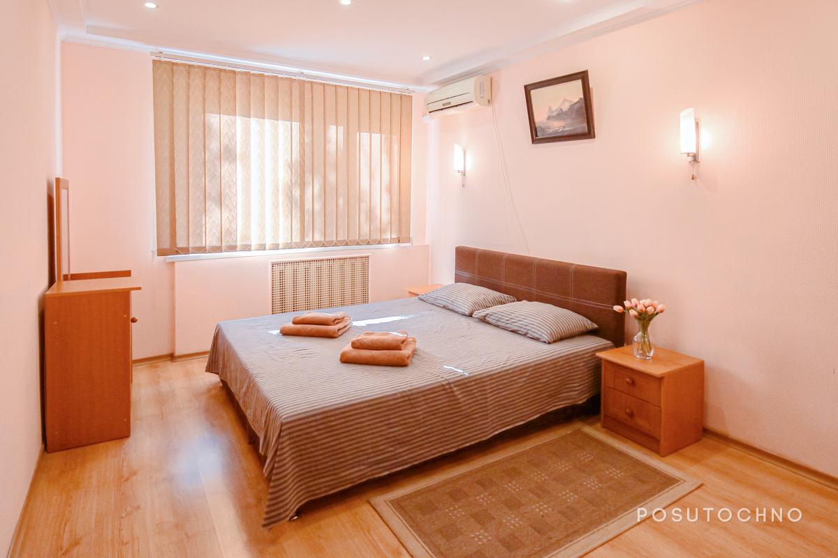 Апартаменти з двома спальнями розташовані за адресою: Новогоспитальна 5, поблизу станції метро Печерська, всього за 7 хвилин ходьби. Також у 15 хвилинах ходьби розташована станція м. Кловська.