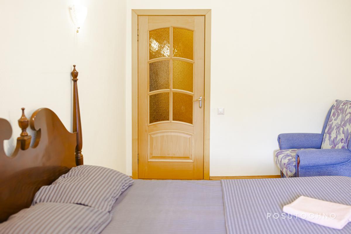 Друга спальня теж оформлена у світлих відтінках. Є всі необхідні меблі для затишного відпочинку: двоспальне ліжко з комфортним матрацом, м'яке крісло для дозвілля, і ще одне крісло яке розкладається.