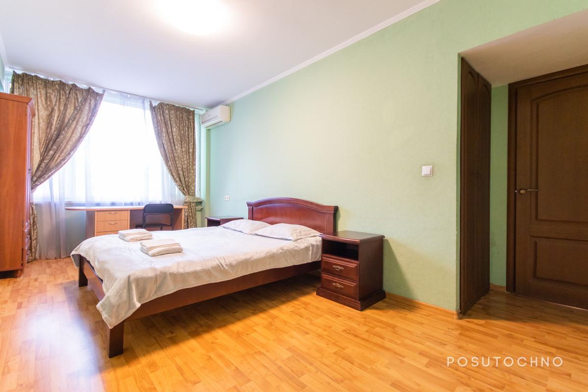 Перша спальня виконана у світлих тонах. Усередині розмістилися всі необхідні меблі для приємного відпочинку: двоспальне ліжко з ортопедичним матрацом, тумбочки, шафа, кондиціонер.